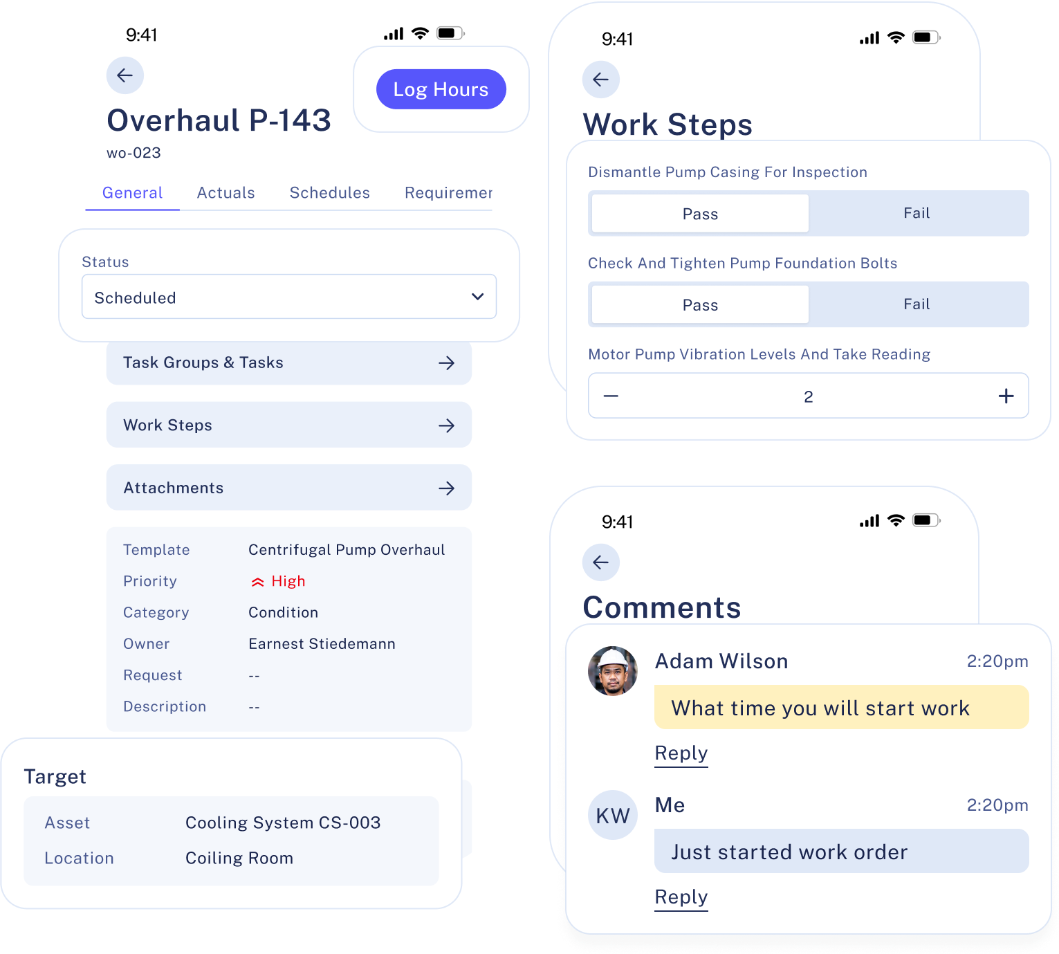 With Sensys mobile, you can track work orders’ progress and detailed execution status, including stats like time logging, comments, pictures, spare usage, and more.